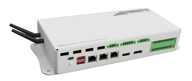The Smart Work Assistant 5 Client comes with 10 inputs and 10 outputs on board. The analog signals are captured by the sensor/actuator box and transmitted to ELAM via the SWA.